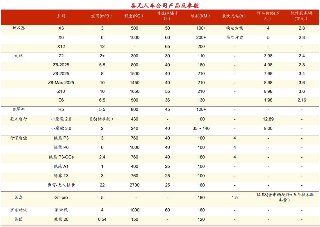 数据显示,截至今年8月底,新石器无人车已部署超过8000台,预计全年将达成1.5万台交付目标;九识智能交付超7000台,同样在年底剑指1万台的交付量;白犀牛预计到2026年,活跃车辆将达到5000台。